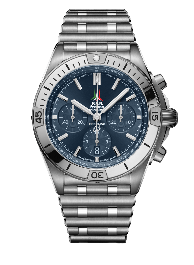 Jam ini memiliki dial berwarna biru dengan tone-on-tone subdials dan logo Frecce Tricolori di tempat di mana biasanya logo Breitling berada. Frecce Tricolori sendiri adalah skuadron pesawat jet dan jam ini adalah tribute untuk mereka, terbatas hanya 250 pieces dan di casebacknya tergrafir “ONE OF 250”.