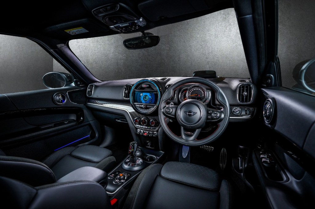 Dari segi interior, mobil ini memiliki headliner Anthracite ramping yang dilengkapi dengan kursi sports Leather Cross Punch dalam warna Carbon Black. Interiornya juga dibuat lebih bergaya dengan John Cooper Works Interior Surface dalam Piano Black, yang memungkinkan pengemudi untuk memilih dari 12 warna ambient melalui satu toggle.