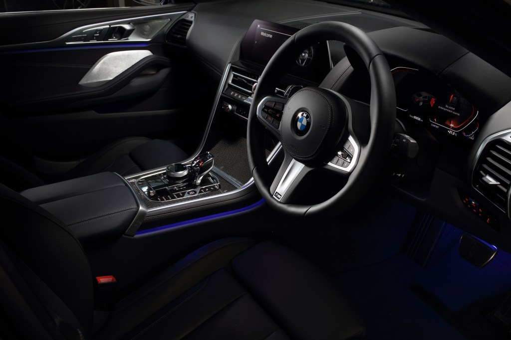Ambient light dipasang sebagai standar di all-new BMW 8 Series Gran Coupé. Selain itu panel instrumen dan pintu bagian dalam, sepenuhnya dibalut kulit, kursi khas sports car hadir dalam balutan Leather ‘Merino’.