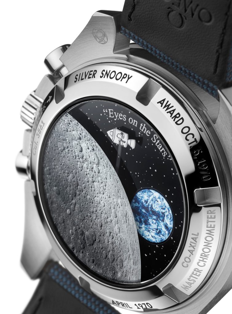 Saat jarum detik kronograf digunakan, Snoopy melakukan perjalanan mengelilingi sisi jauh bulan yang misterius – seperti halnya kru Apollo 13 – dengan permukaan bulan yang didekorasi pada kristal safir menggunakan metalisasi terstruktur mikro yang unik.