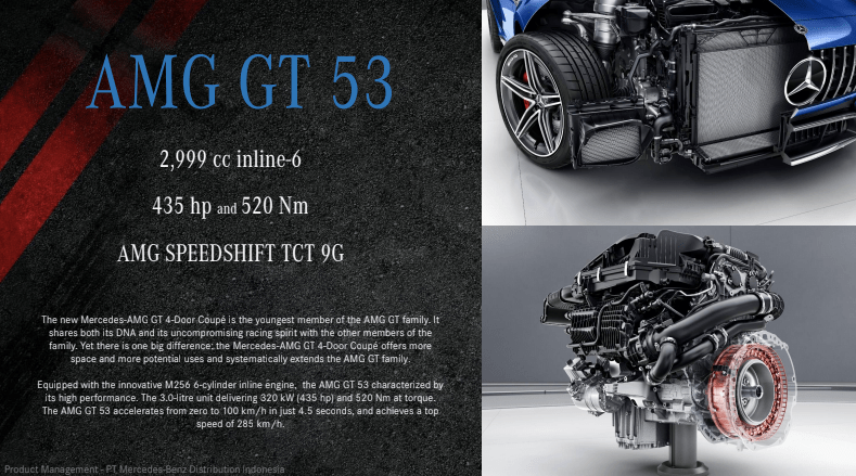 Menariknya lagi mesin mobil membuatnya menjadi Mercedes-AMG dengan seri 53 pertama yang diluncurkan di Indonesia, sebuah penyempurnaan dari seri 43 dengan penambahan teknologi mild-hybrid EQ Boost.