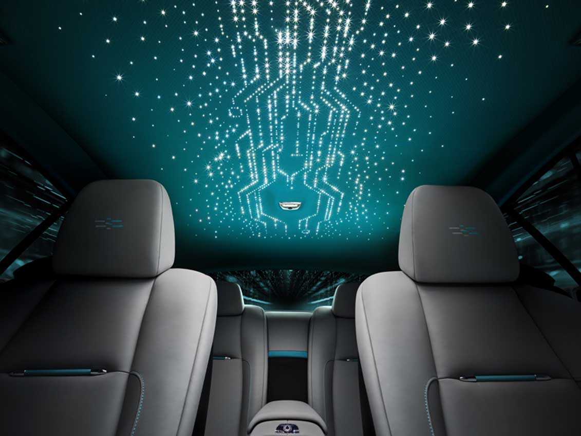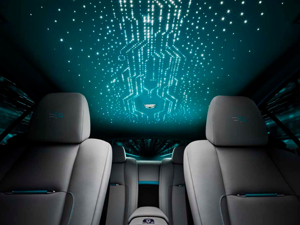 ‘Illuminated Fascia’ inovatif dari Rolls-Royce Ghost baru memulai debutnya setelah dua tahun dan lebih dari 10.000 jam pengembangan oleh Bespoke Collective. Fitur ini menampilkan 850 bintang yang menyempurnakan keanggunan unik Starlight Headliner.