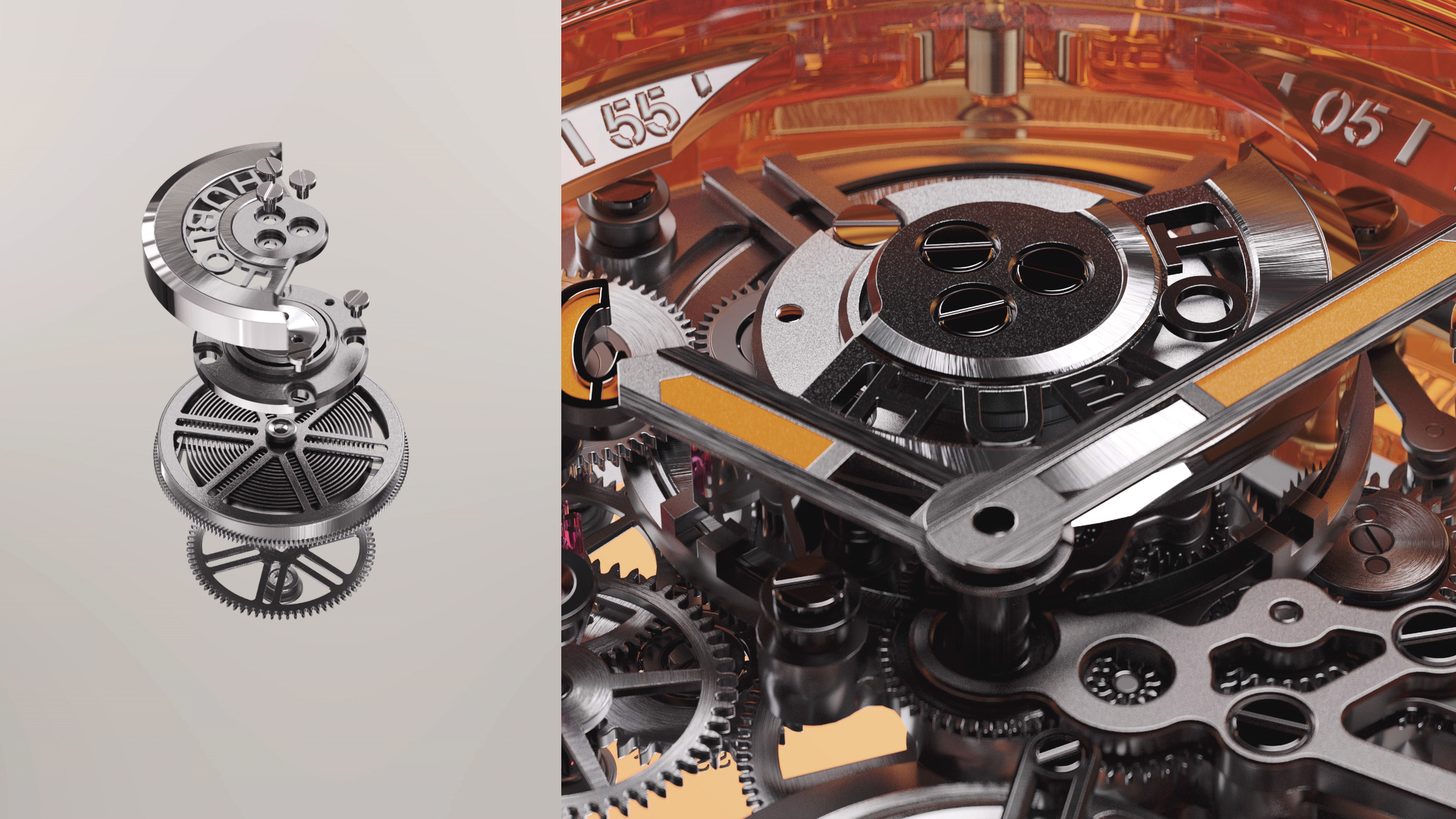 Melengkapi bahan case yang eksotis, jam ini pun dilengkapi dengan movement yang canggih. Sebuah movement tourbillon baru yang self-winding atau automatic dengan cadangan daya selama tiga hari (72 jam).
