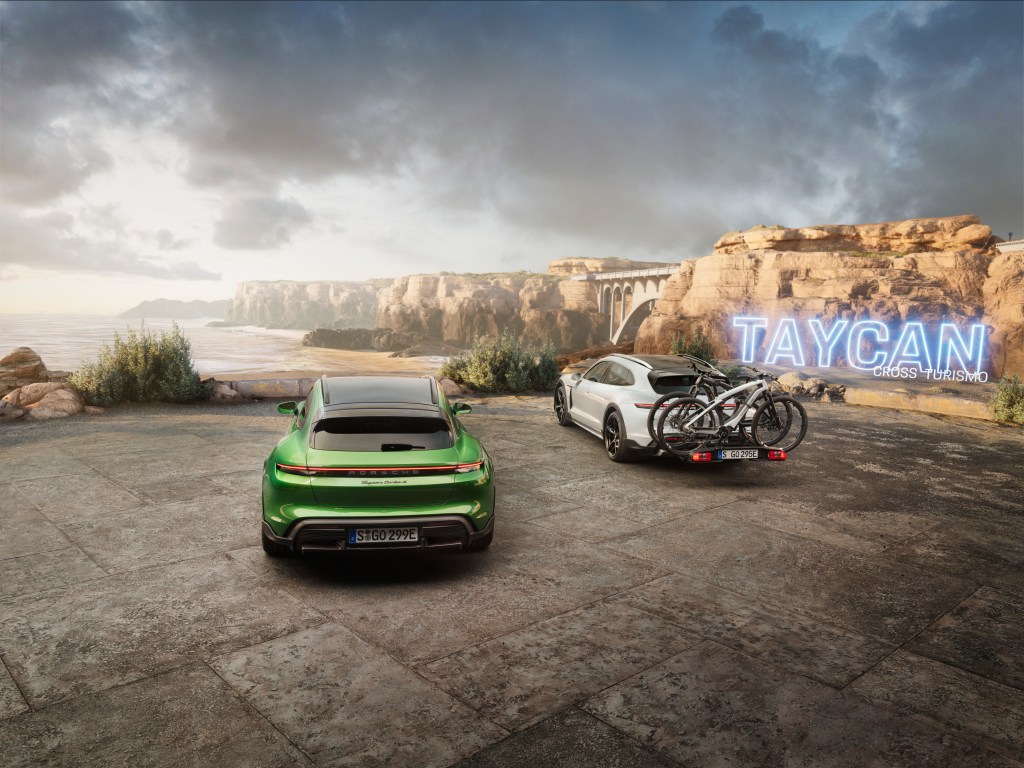 Khusus untuk Taycan Cross Turismo, Porsche telah mengembangkan carrier belakang yang bisa membawa hingga tiga sepeda. Ini dapat digunakan secara universal untuk berbagai jenis sepeda.