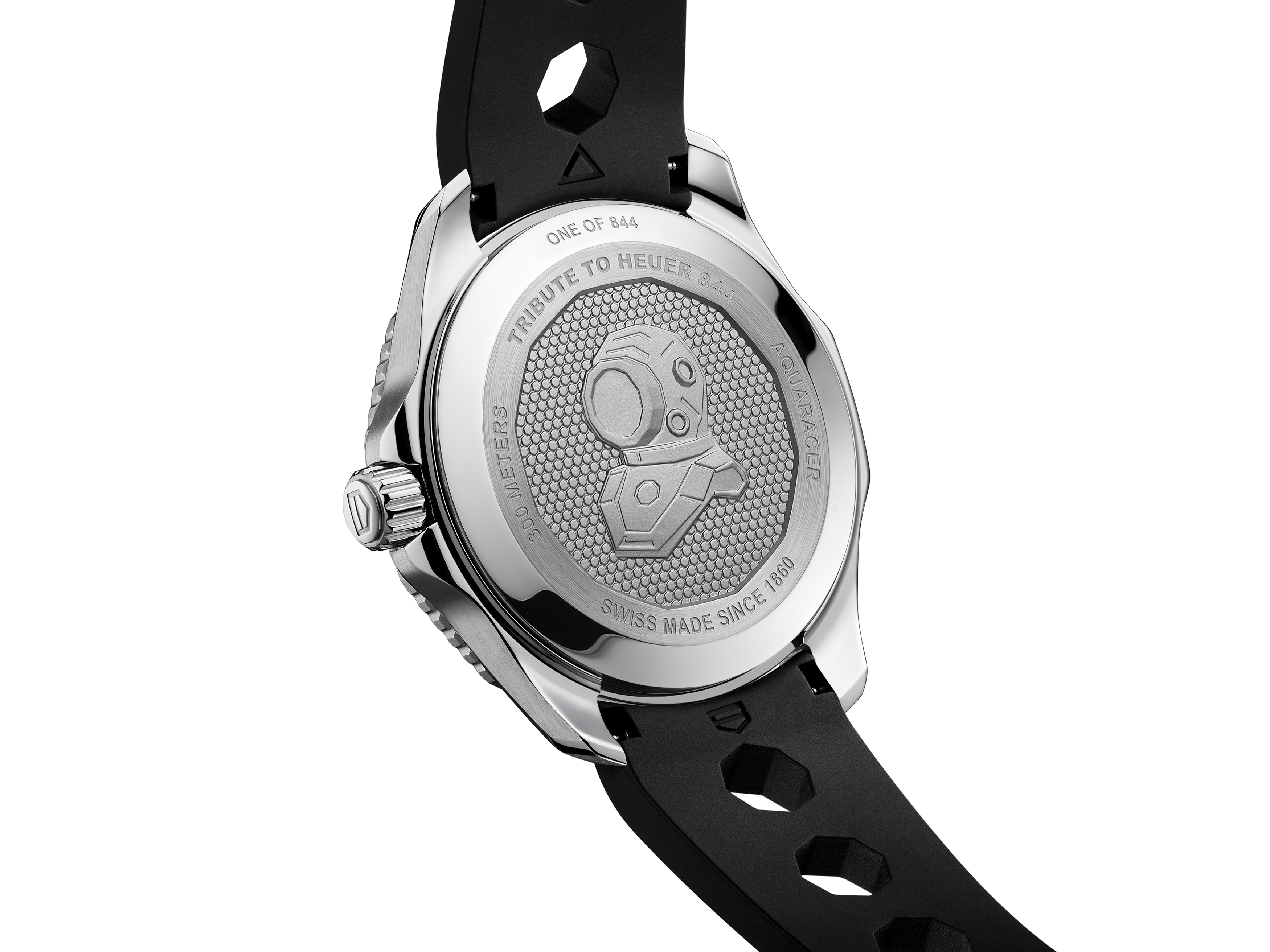 Sebuah koleksi baru tentunya tidak lengkap tanpa adanya sebuah jam edisi terbatas, untuk itu Tag Heuer memperkenalkan Aquaracer Professional 300 Tribute to Ref. 844. Jam ini melengkapi koleksi delapan varian Aquaracer terbaru dan jam yang unik karena terinspirasi dari jam diver era 70an.