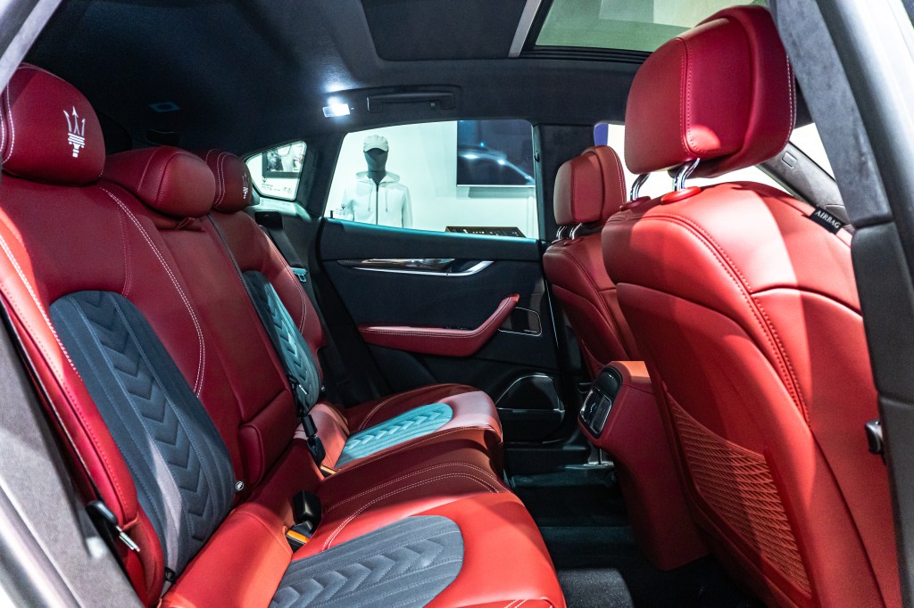 Pada Maserati Levante yang dihadirkan di Maserati Gallery, interiornya dilapisi bahan Zegna yang membalut seluruh permukaan dashboard, panel pintu, dan jok Levante yang berdesain sport.
