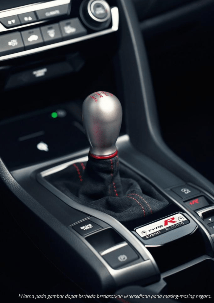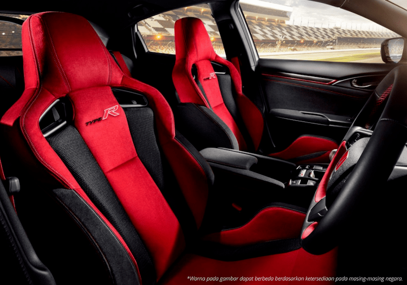 Untuk bagian interior juga terdapat Sports Steering Wheel, Engine Start/Stop Switch serta Sports Mat, Sports Luggage Mat, Carbon Shift Knob, Scuff plate yang tersedia dalam 2 pilihan warna yakni hitam dan merah yang akan semakin menambah kesan sporty dari New Honda Civic Type R.