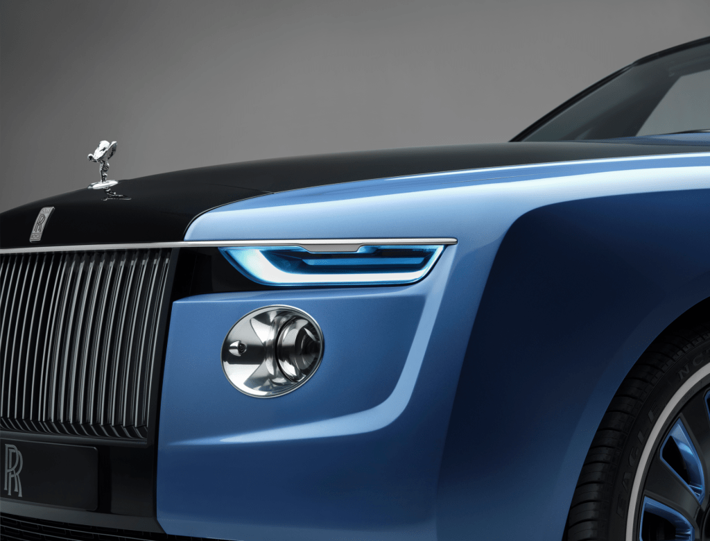 Bagian depan mobil ini mungkin masih sangat identik dengan desain Rolls-Royce saat ini, dengan Pantheon grill yang besar dan lampu berbentuk bundar yang ikonik. Kap mesinnya panjang karena memuat mesin V12 yang menghasilkan tenaga besar. Kap mesin ini juga memiliki warna gradasi yang pertama kalinya dibuat oleh Rolls-Royce.