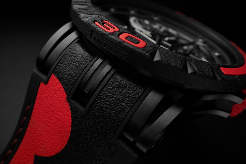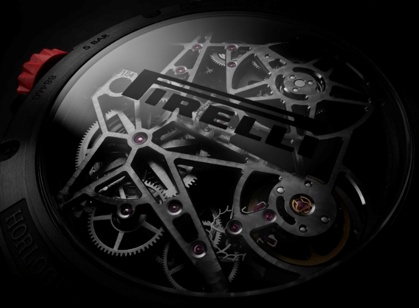 Warna bezel, crown, dan strap juga terinspirasi dari warna di sisi ban balap mobil Pirelli yang berwarna putih, merah, dan biru. Ketiga warna ban yang ikonis dari Pirelli ini digunakan di dunia balap untuk memudahkan tim untuk mengganti ban yang sesuai kondisi balapan.
