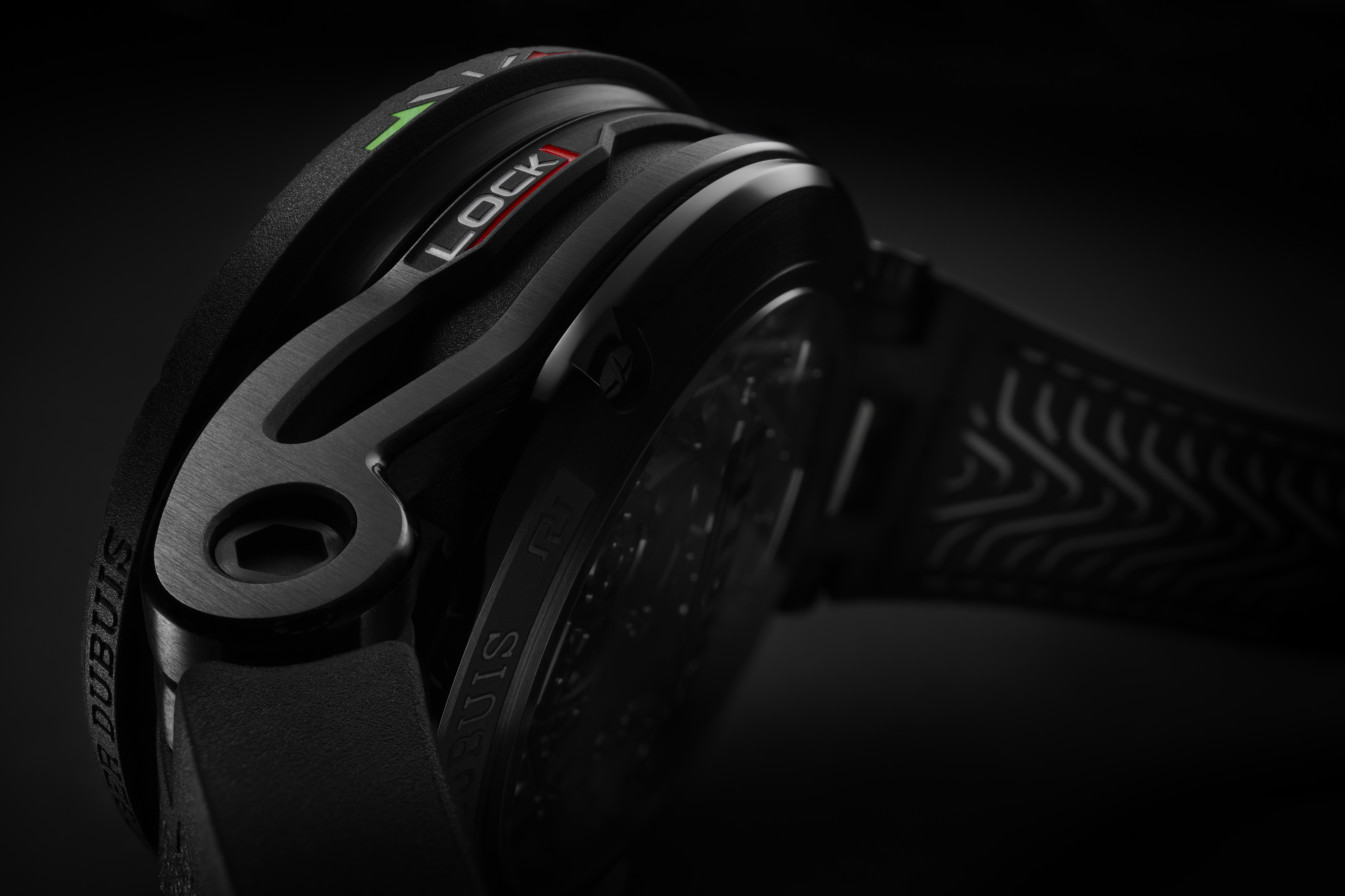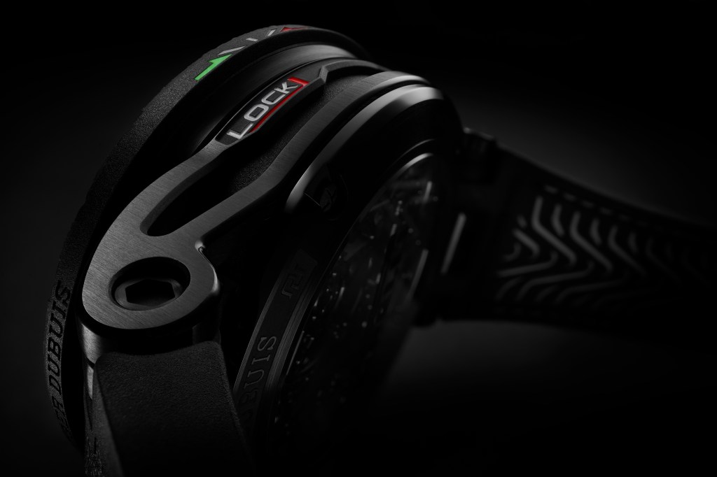 Dengan sistem penguncian ini pemilik jam bisa mengganti bezel dengan cara memutar bagian sampai terdengar bunyi klik. Roger Dubuis telah membuat proses ini memastikan bahwa sensasi putaran dan kliknya akan begitu memuaskan bagi para pemilik jam.