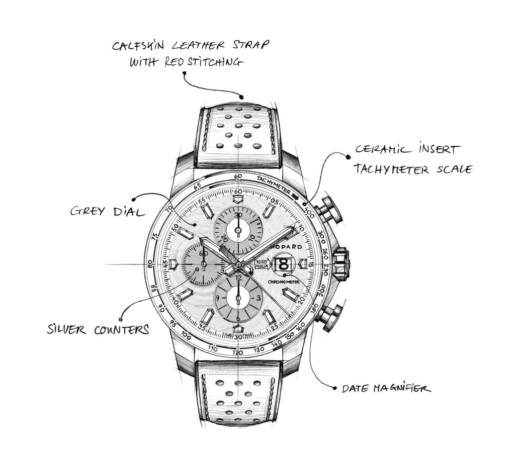 Dengan lug yang pendek, jam ini akan cocok untuk sebagian besar pergelangan tangan, dan desain casing stainless steel 44 mm mengambil inspirasi kuat dari desain mobil klasik, memadukan gaya kontemporer dengan semangat vintage. Bahkan strap kulit anak sapi terinspirasi oleh sarung tangan balap berlubang tradisional; Jahitan tone-on-tone merah atau hitam, berlapis karet, dan mengingatkan pada motif pada ban balap Dunlop 1960-an — inspirasi motorsport yang pertama kali disertakan dalam koleksi Mille Miglia 2018 milik Chopard.