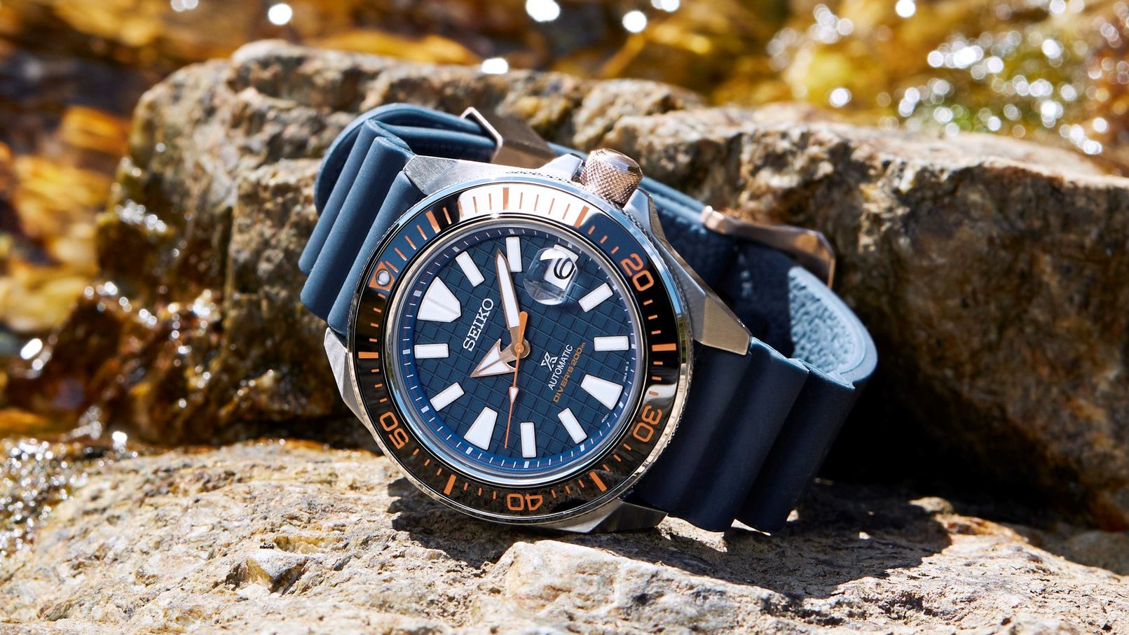 Dial dan strap silikonnya memiliki warna biru laut, dan aksen oranye terang di bezelnya terinspirasi oleh terumbu karang bawah laut.