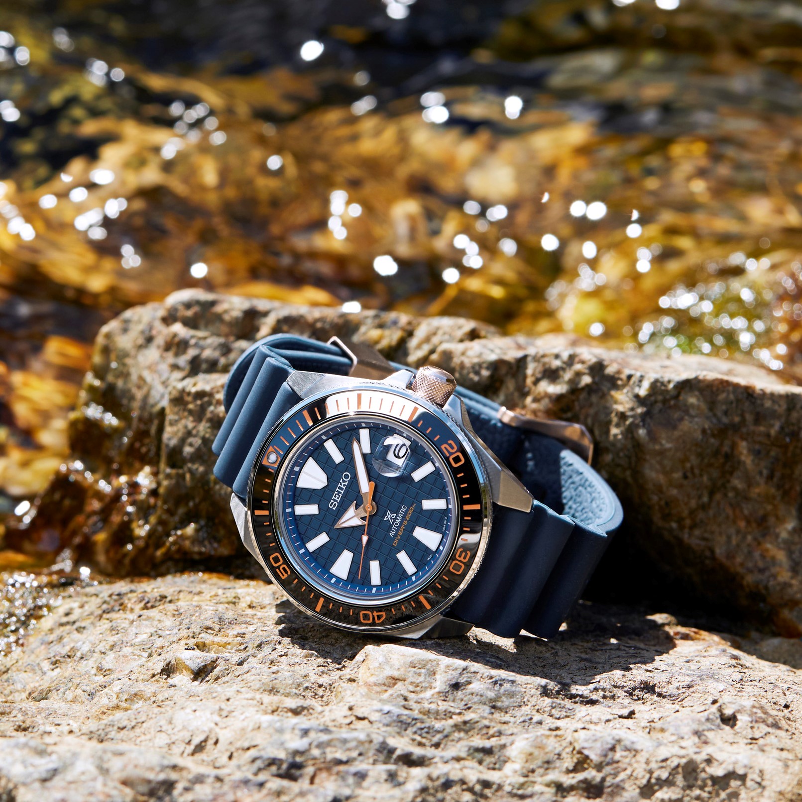 Tentu saja Seiko telah memberikan sentuhan khusus, agar jam terbaru ini memiliki tampilan yang berbeda jika dibandingkan dengan Seiko Samurai pada umumnya. Dial dan strap silikonnya memiliki warna biru laut, dan aksen oranye terang di bezelnya terinspirasi oleh terumbu karang bawah laut. Bezel jam edisi khusus ini pun istimewa karena memakai insert yang terbuat dari keramik zirkonia yang lebih kuat dari jenis keramik lainnya. Jam ini juga menonjolkan kombinasi angka oranye terang dan bezel keramik untuk memastikan jam ini mudah untuk dibaca penggunanya.