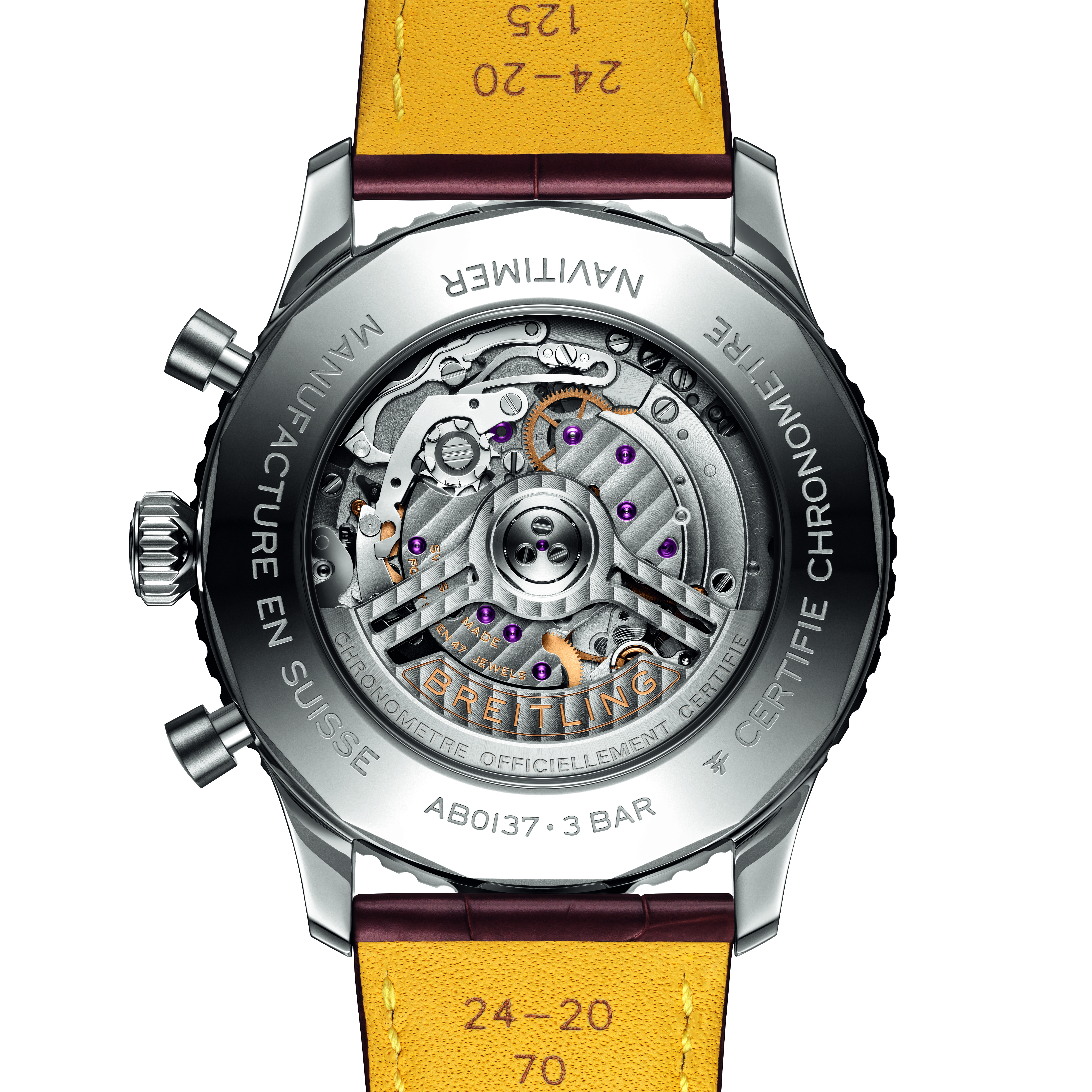 Oscillating weight jam terbaru ini juga memiliki bentuk yang lebih ramping sehingga memberikan pandangan yang lebih jelas untuk movement Breitling Manufacture Caliber 01 yang tersertifikasi oleh COSC. Movement ini memiliki cadangan daya sampai 70 jam dan memperbolehkan penggunanya untuk mengganti tanggal kapan saja melalui sub dial di posisi jam 6.